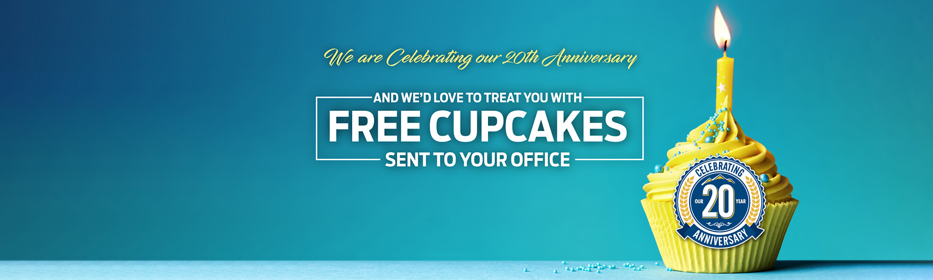 We are celebrating our 20th anniversary and would love to treat you and your entire office with free cupcakes.